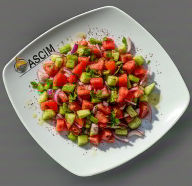 Taze domates, salatalık, biber, soğan ve maydanozla hazırladığımız, zeytinyağı ve limonla lezzetlendirilmiş ev tadında ferah bir salata! Ana yemeklerin yanında sofralara renk ve tazelik katar.